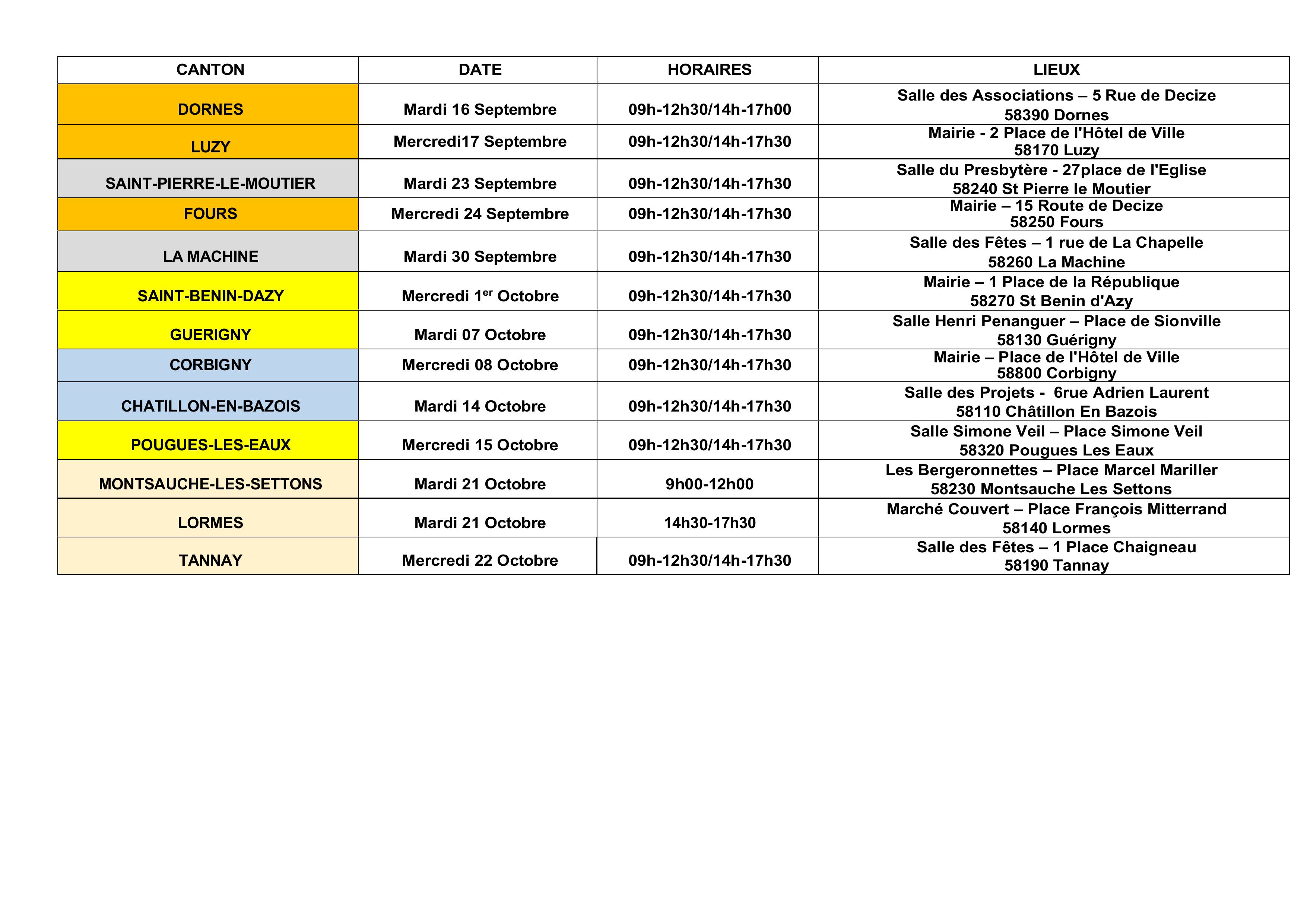 - le lundi 12 novembre, maison de la santé à Clamecy de 9h à 12h.